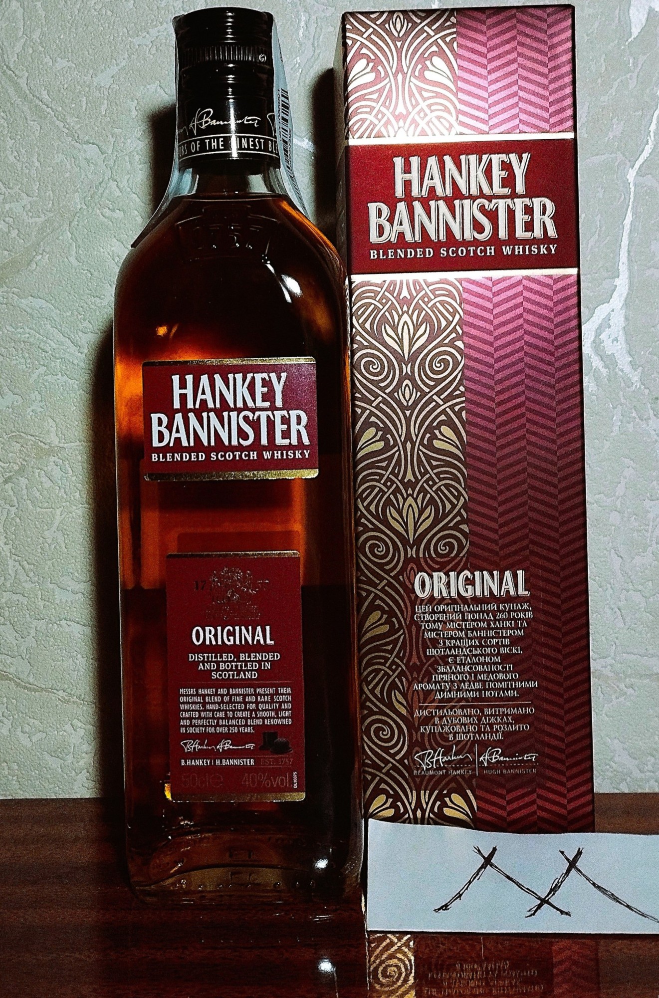 Я уже как-то выкладывал бутылку "Хэнки Бэннистэр", но та была 0.7, а эта 0.5. Зато в подарочной коробке. А мораль из этого... Ну, вы сами знаете, какая.