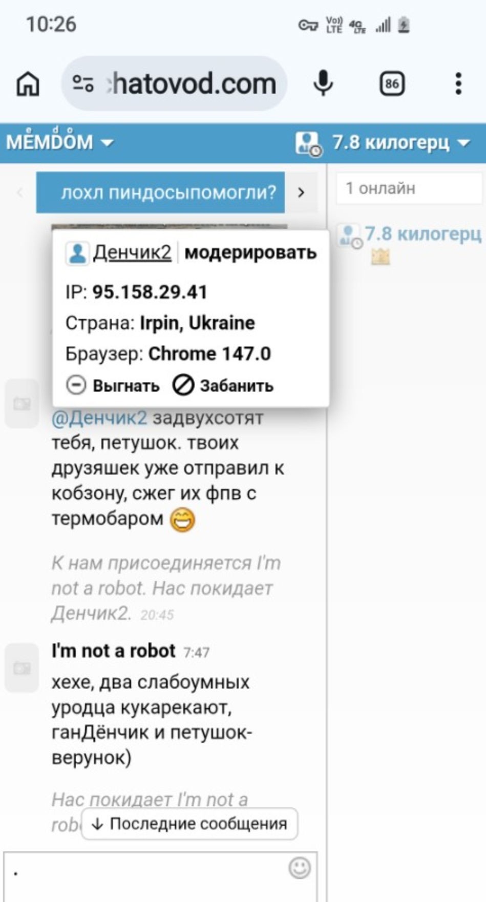 в чате для дебилов кто-то писал из Ирпеня. неужели чич?