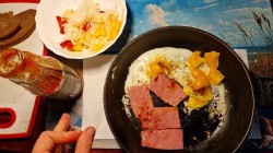 Рыбка заебись, вкусная, мне понравилось. Шоколадка была милка с фундуком, если честно то сперва когда откусил 1 кусочек, на вкус показалось как будто виски, перекосило аж, потом норм зашло под чаëк