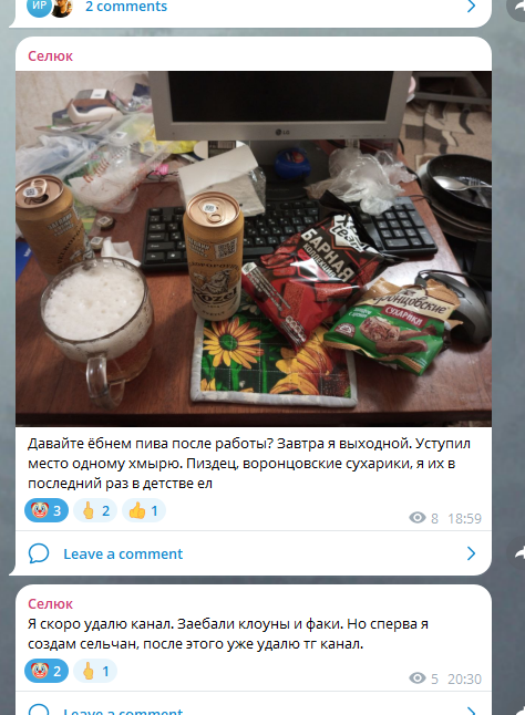 оба кокочатика в телеге, и у дантеса и у омского это петушатники, но у дантеса ещё хуже, обвешанный ботами, с запретом постить сутки, брянский на этих пидоров такой ужас навёл, что они анально огородились?