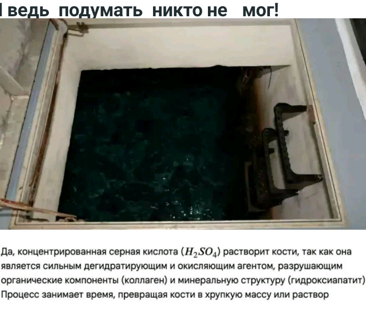 >>905840Ничего необычного, просто в доме Эпштейна обнаружили бассейн из серной кислоты. Компания-подрядчик думала, что поставляет тысячи литров серной кислоты для обслуживания генераторов и систем фильтрации воды, но оказалось, что ребе ловко придумал для нее и другое весьма полезное применение. В таком бассейне можно растворить вообще что угодно и следов от органики не останется. Сколько детей, женщин и гоев было там растворено, навсегда останется загадкой. Ребе Эпштейн, итоги.