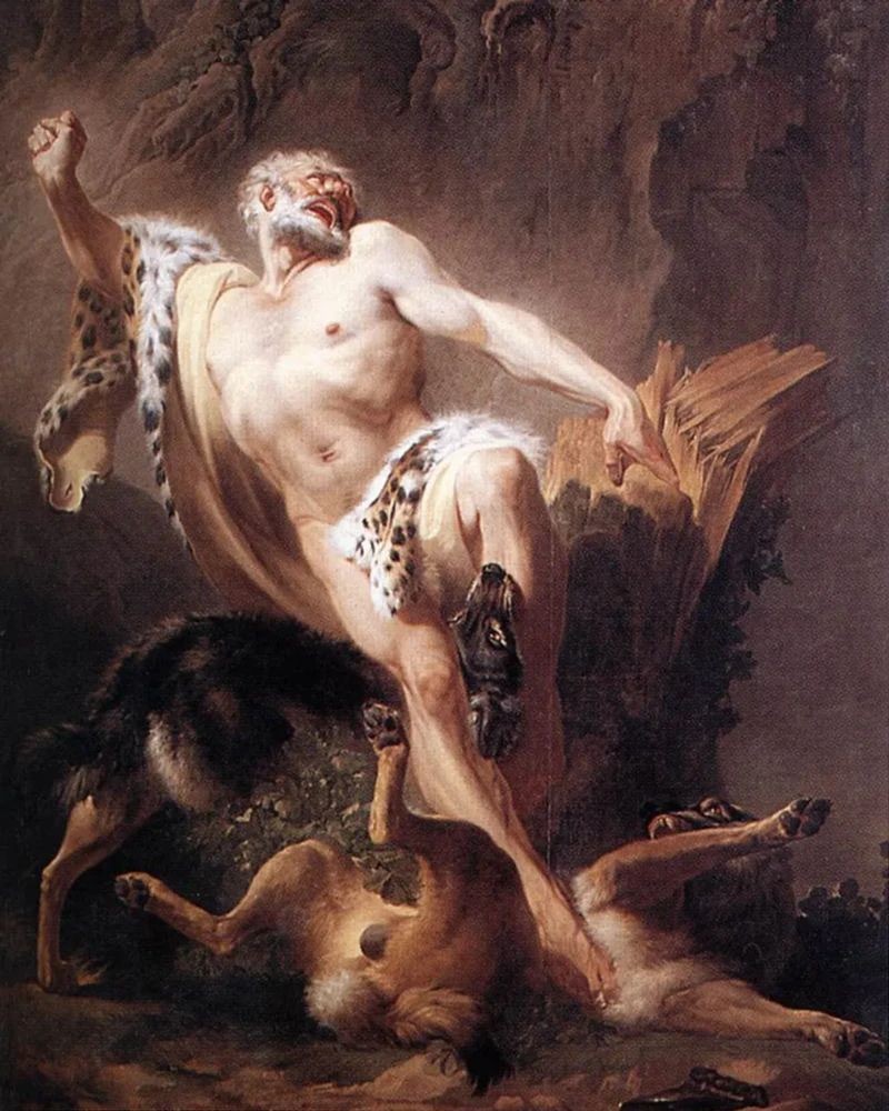 Милон Кротонский уже в почтенном возрасте пытался разорвать руками дубовый пень, но не рассчитал сил. Пень защемил ему руки. В беспомощном состоянии Милон якобы стал жертвой льва (или, по другой версии, волков). Сюжет этот был отражен во многих произведениях живописи и скульптуры.