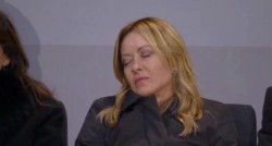 Премьер Италии Мелони сидя в ложе для почетных гостей на открытии Олимпиады наклонила голову и закрыла глаза.