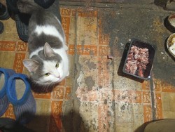 Пока гандосрань питается нищебродскими просроченными помоями, мой кот ест мясо.