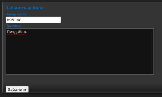 Каким образом ты тогда хочешь кому-то что-то доказать? Мог бы тогда и тред не создавать. Бан лист чист, но ты утверждаешь, что ты якобы забанен. Возможно это баг, а возможно это бан по московским айпи от Алексея (хотя в этом случае ты бы видил другую причину). ------ такой причины бана у нас нет, если ты получаешь бан без причины, то в окне бана ты видишь причину "за идиотизм" или что-то типа того. Вместо того чтобы попытаться разобраться в ситуации, ты ведёшь себя как поехавший. В следующий раз спокойнее будь.
