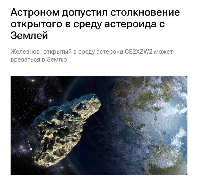 Астероид CE2XZW2 обнаружили только сейчас — он находится примерно в 3 тыс. км от планеты, что указывает на вероятность столкновения в ближайшее время.