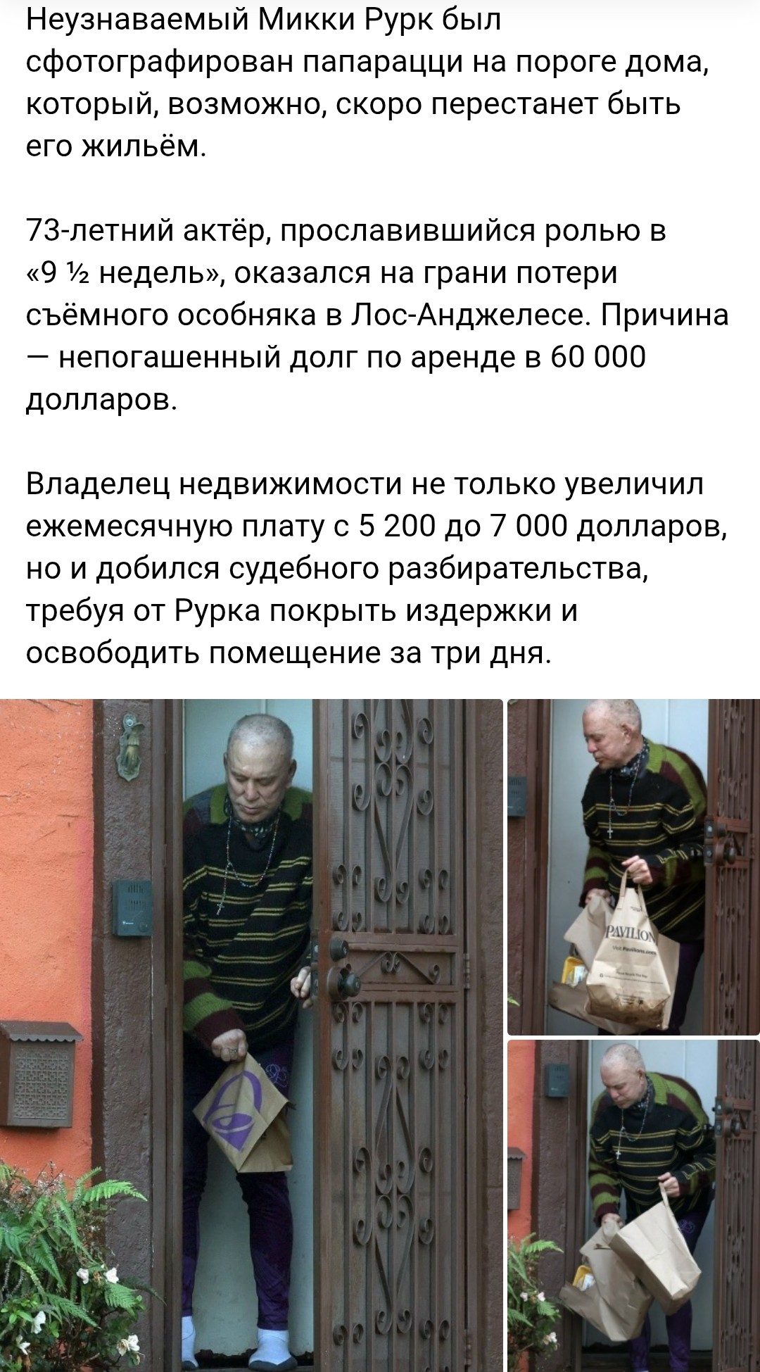 Микки Рурк совсем дошёл. Даже 7к долларов нет на оплату.