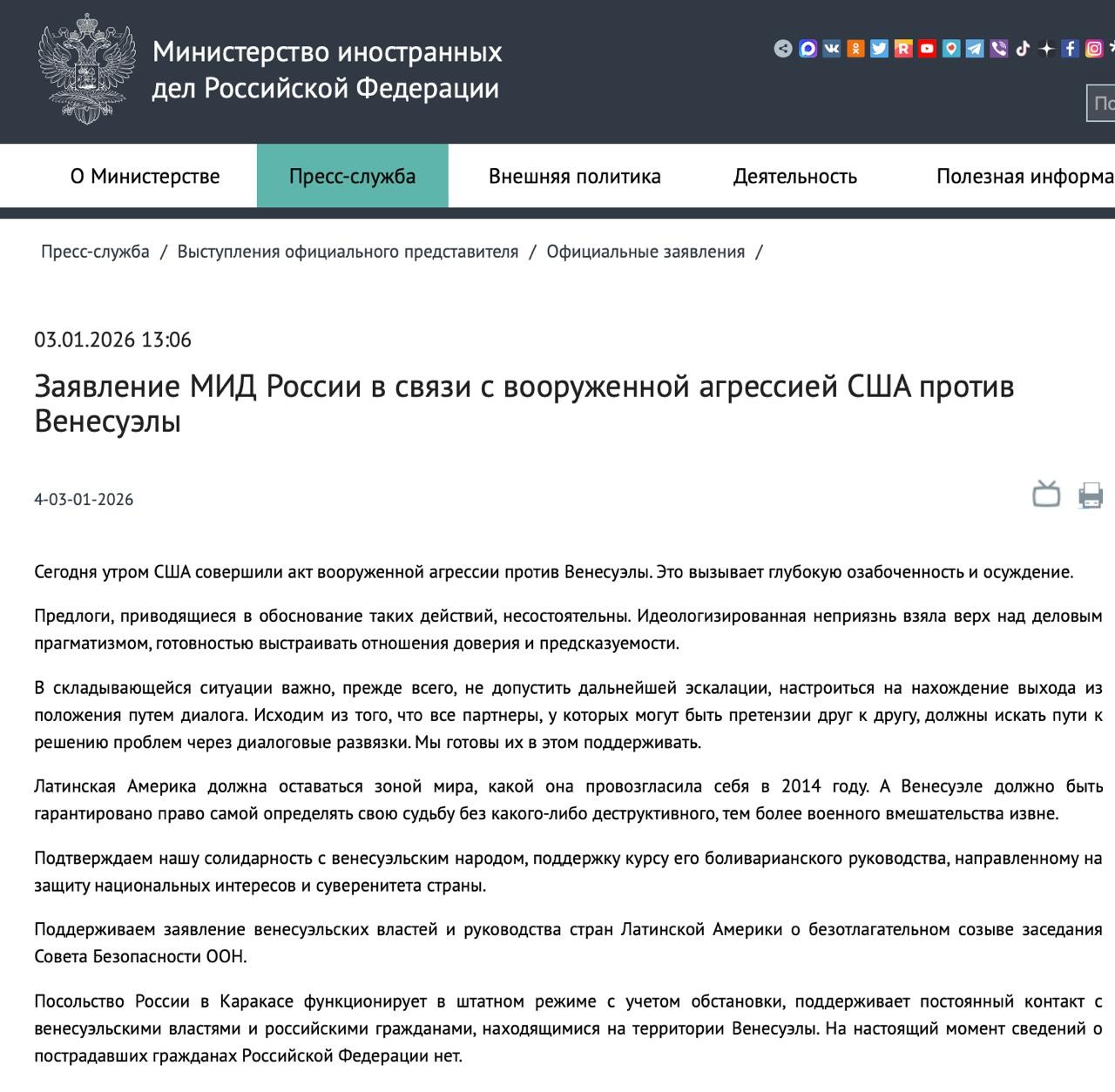 Добрый Кола», RuTube, Max, VK, «Одноклассники», «Вкусно — и точка», АвтоВАЗ и «Пятерочка» объявили об уходе с американского рынка из-за атаки США по Венесуэле - Russia Today.