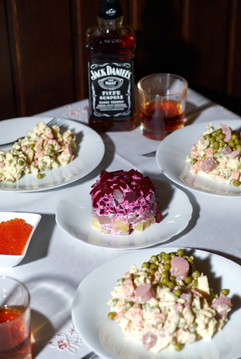 Второй день праздников. Кушаем оливьешечку. Откупориваю вторую бутылочку вискарика.