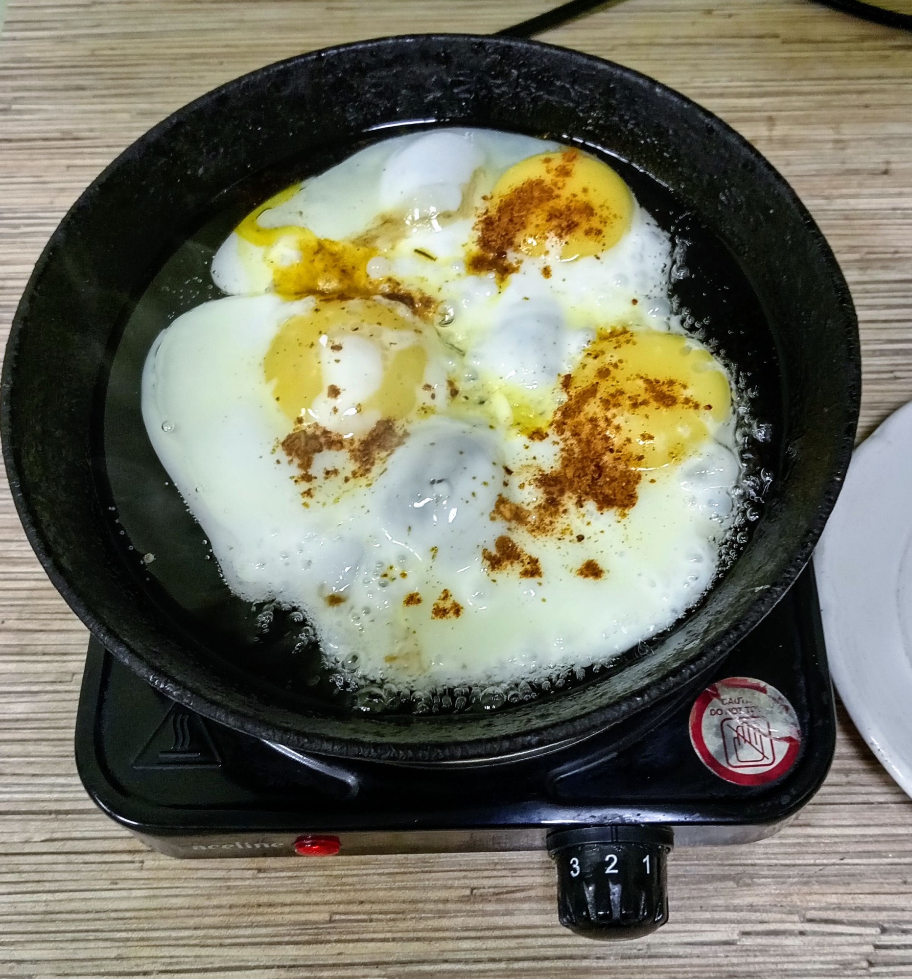 жарил глазунию в чугунной сковороде, прилипла, пришлось вилкой отдирать, хотя получилось съедобно
