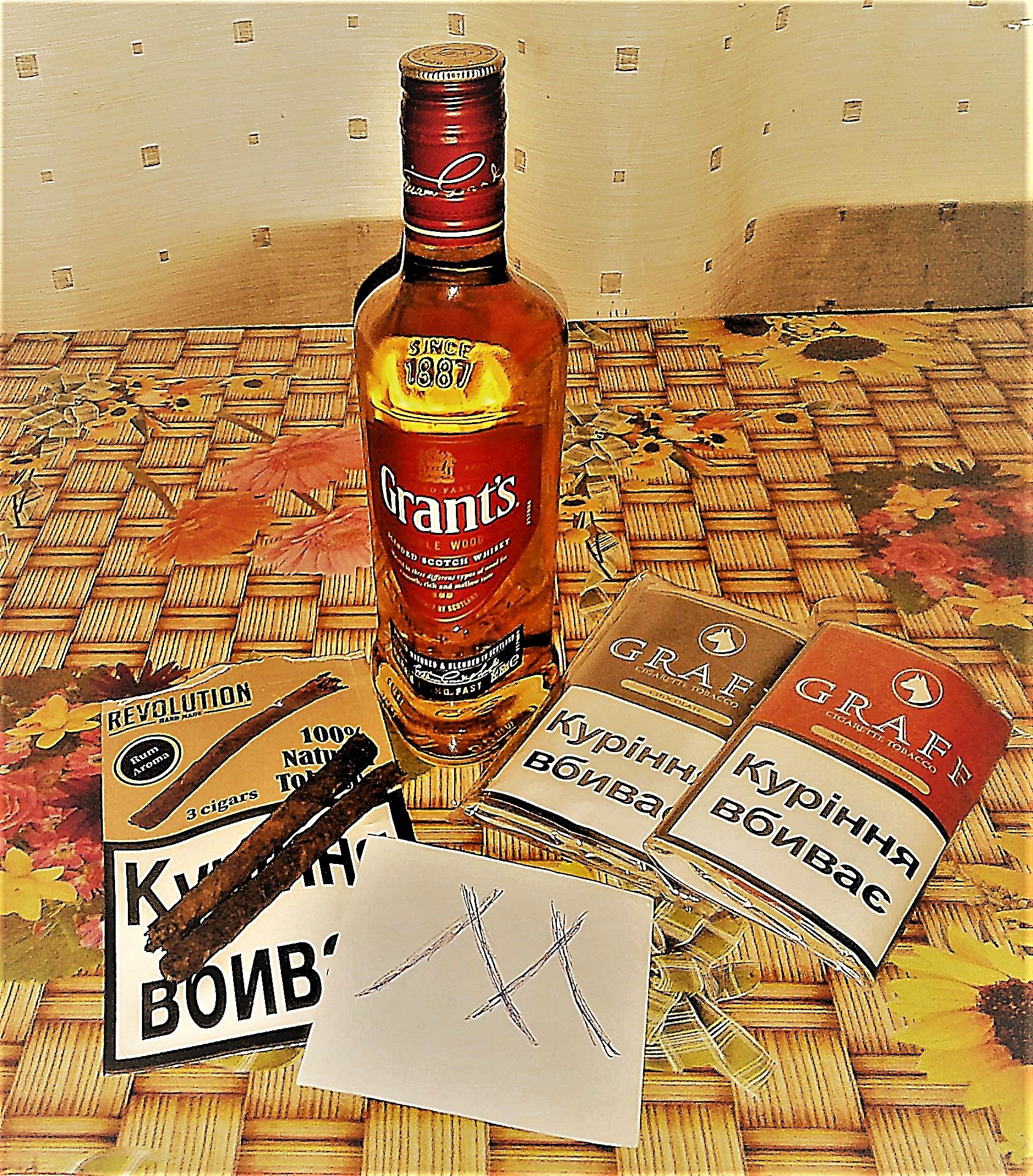 Сигары мексиканские, ручной скрутки, ароматизированы ромом. Внешний вид сигар наводит на мысль о ковбое, а не буржуе в цилиндре. Скотам не покурить. Табак для самокруток, виски.