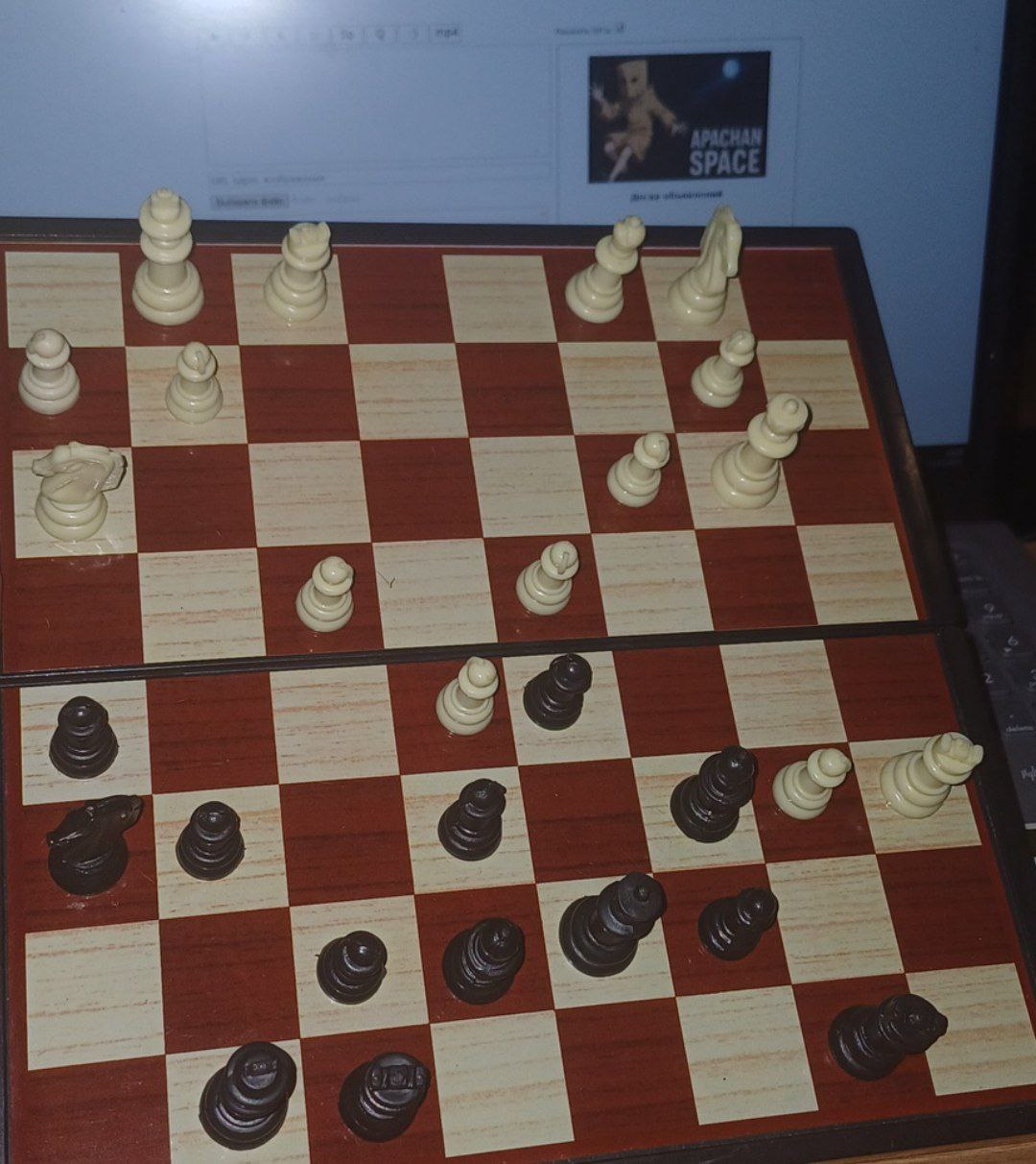 Есть гроссмейстеры на апачане? Разложил РЕАЛЬНУЮ шахматную доску и вступлю в игру с первым же неймфагом, сделавшим ход. Остальные же смогут наблюдать и комментировать.