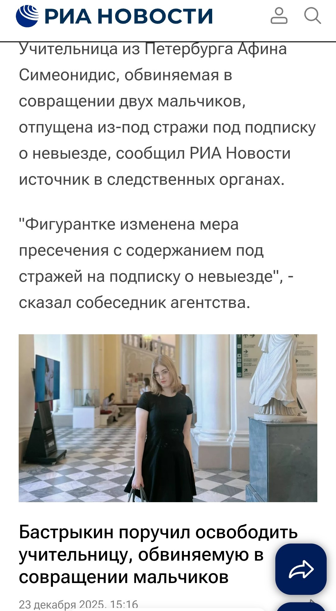Там это самое, училку-педофилку отпустили.