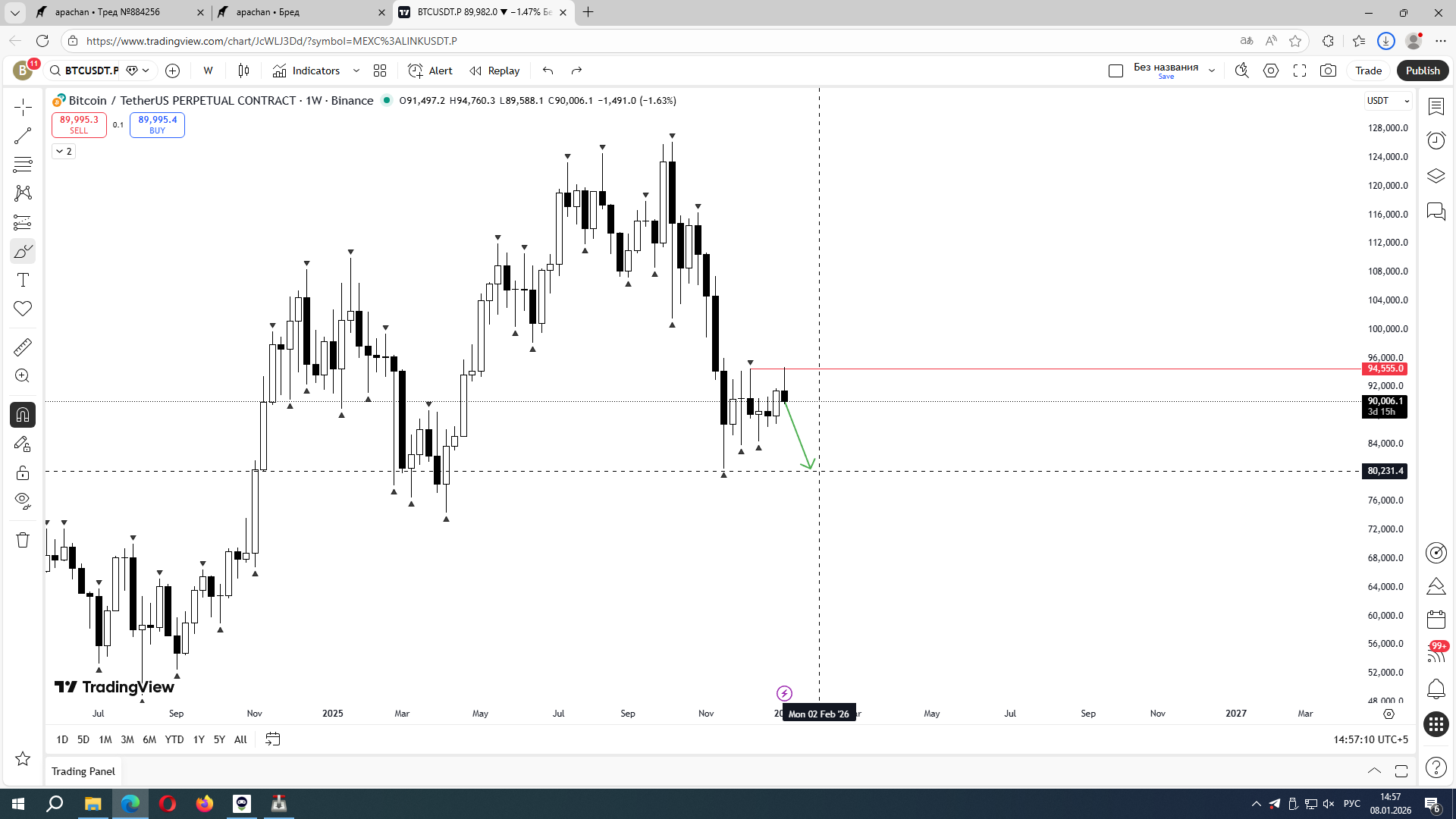 Щас пишут что бтк должен пойти вверх, прогревают народ на его покупку. Не верьте, он подешевеет ещё до 80к минимум.