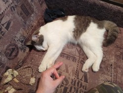 Вчера вечером я выносил мусор, он выбежал за ограду и больше я его не видел. Уже начал думать что помер, но нет, явился домой сегодня же вечером. Сутки где-то бомжевал, выживал, шароёбился.