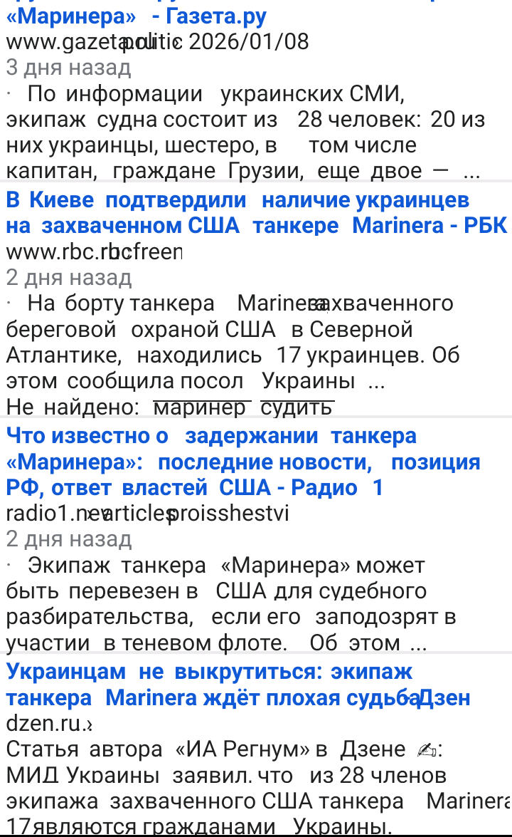 "Посольство Украины в США подтвердило присутствие украинцев на борту танкера «Маринера». На борту, задержанного американской береговой охраной судна, находятся 17 членов экипажа с украинским гражданством."