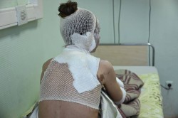Женщина с детьми вбежала в лифт с криками о помощи, на ней была окровавленная одежда. Соседи помогли ей промыть ожоги водой и вызвали новую скорую.