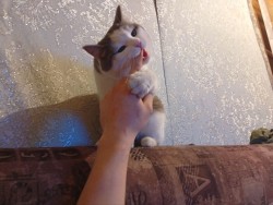 Я его так дрессирую, кот становится более податливым. Еще уши покручиваю, хрустят как чипсики.