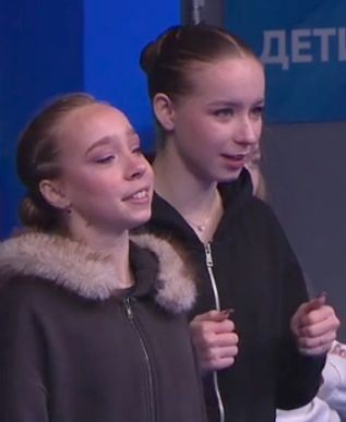 Это юные фигуристки. Одна из них сжала кулочки и напряжена,, видимо следят за выступлением колеги по цеху, но я хз за кем. Наверное за тем кто занял 6-е место на олимпиаде...