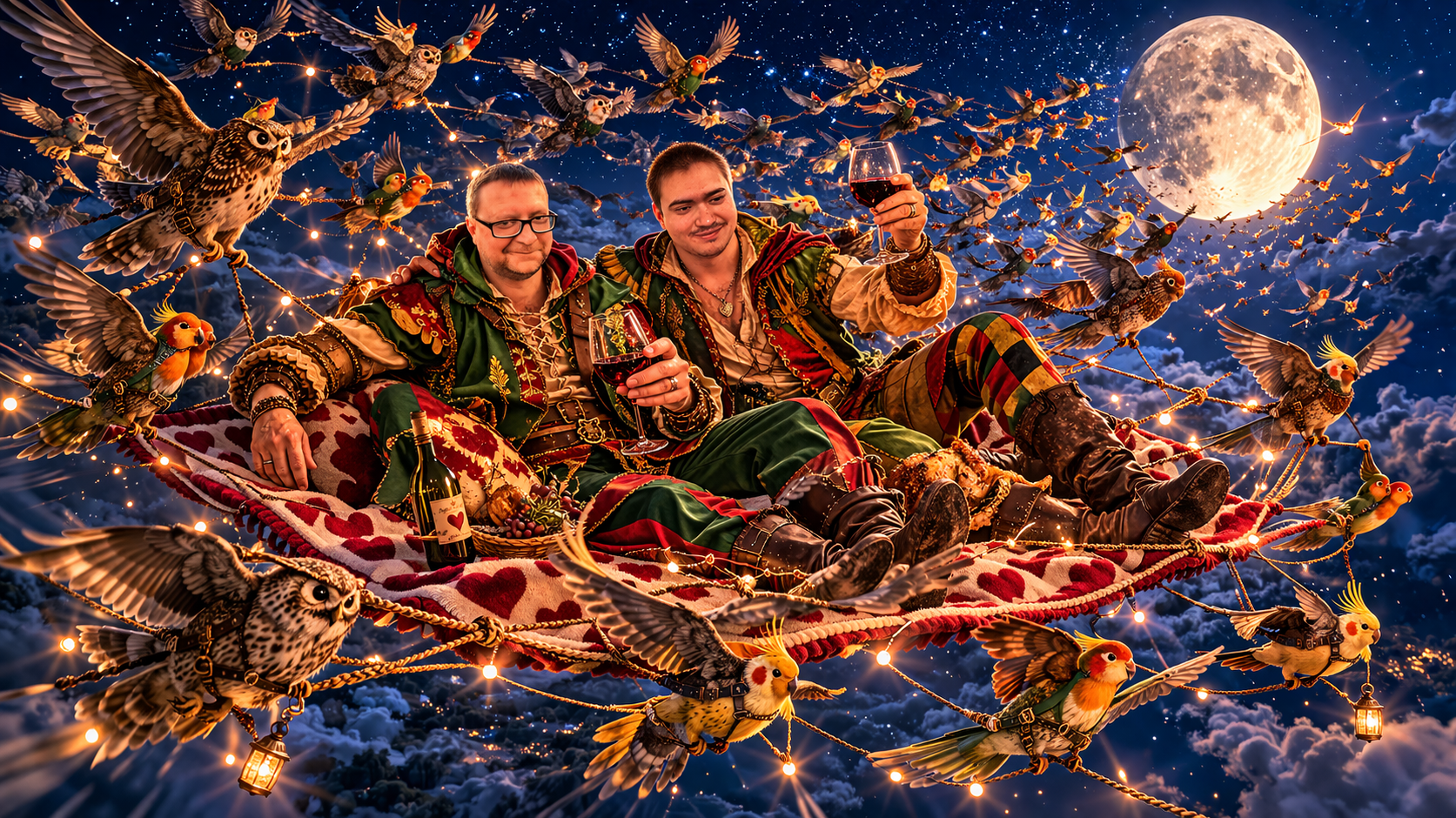 Play guitar and drinking wine