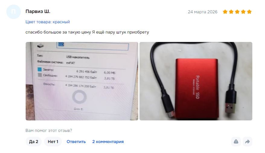 Этож закос под самсунговский ссдшник т5, моему уже лет 10, стоил 100 баксов на терабайт, спустя 10 лет цена та же, скорость записи чтения топ но огромный минус это сраный разьем тайп си которые даже если аккуратно юзать разьебывается и глючит.