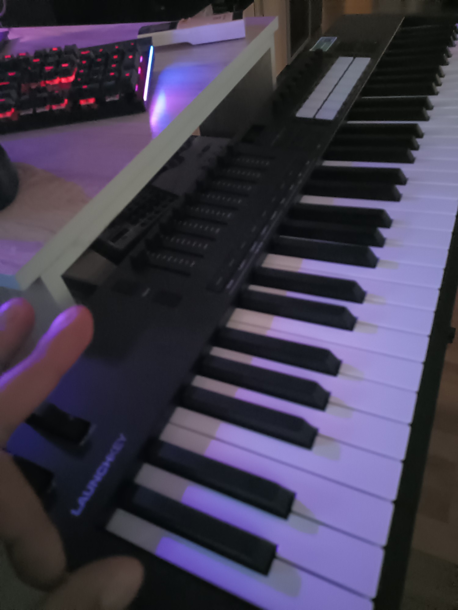 Прикольные клавиши. Только у меня покороче, на 49. До этого был акаи мини. Я не клавишник, до сих пор не очень понимаю, нахуя я взял на 49 клавиш. Надо было брать мини лаб. Вот такую парту смастерил, теперь надо ещё выдумать какую-нибудь приблуду, чтобы ноутбук вешать на это дело. Ещё звуковуха и уши какие-нибудь нужны, а то сейчас у меня уши, как из треда про ватные наушники. Короче сейчас я на этапе сборки сетапа, подбора и изучения VST, и переката на какую-нибудь DAWку с нормальным перформанс модом.