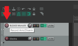 Значит добавляем инструмент, жмём ПКМ по кнопочке "Record Armed" (пикрл), вываливается меню в котором выбираем пункт "Automatic record-arm when track selected", это позволит нам посылать сигналы в выбранный плагин, после этого все новые плагины, добавленные в проект будут работать в этом режиме.