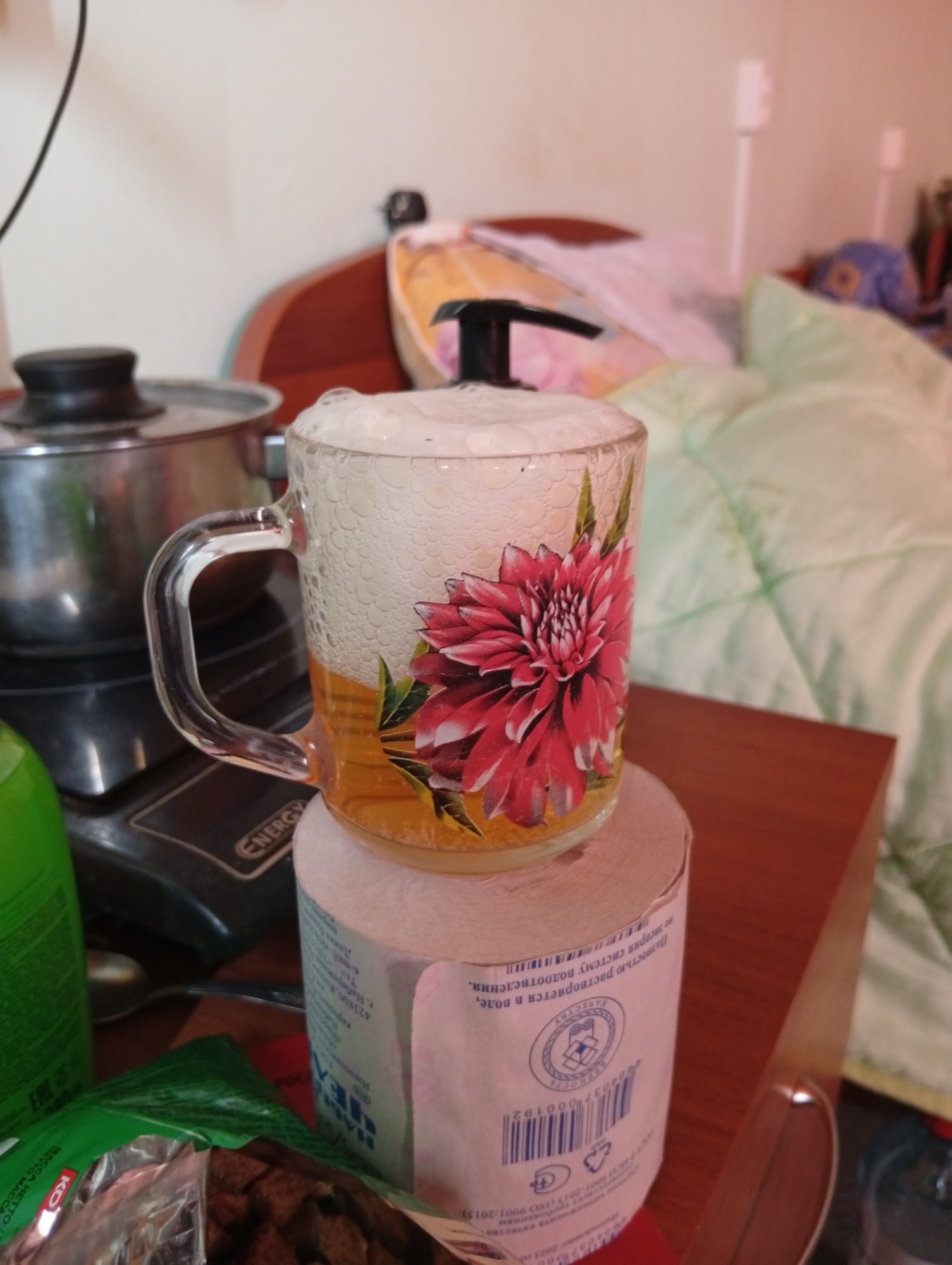 Нету нормальной пивной кружки, буду как педик пить из бокальчика со с цветочком.